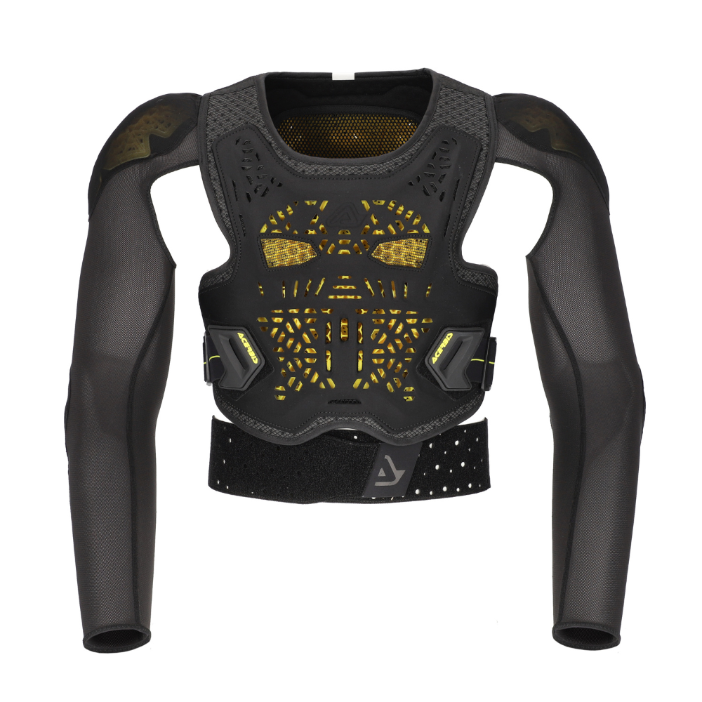 Pettorina Acerbis Plasma 2.0 leggera e ventilata con protezioni CE Livello 2 complete. Comfort elevato, massima libertร di movimento e compatibilitร con neck-brace.